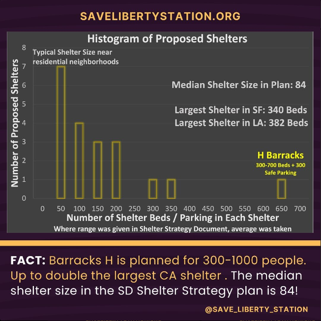 The City of San Diego is demolishing Barracks H, and building a 700+ person homeless encampment on the east side of Liberty Station. This facility will likely be the largest in California.